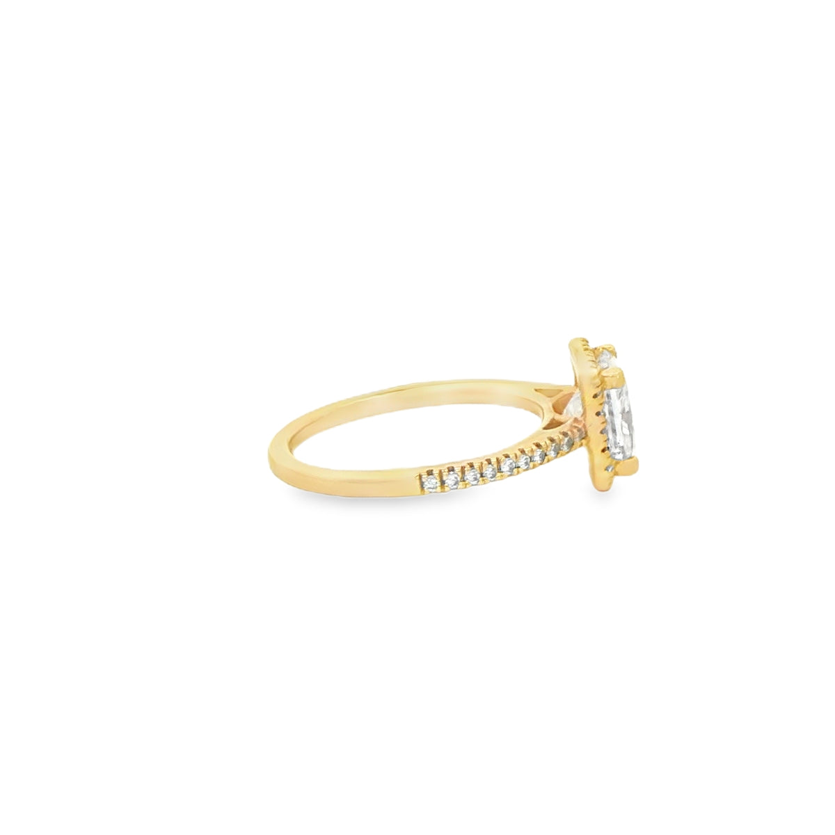 14 KARAT RING SIZE 6.75 NATURAL DIAMOND CLARITY SI2/COLOR I-J PRINCESS CUT HALO DIA SHANK