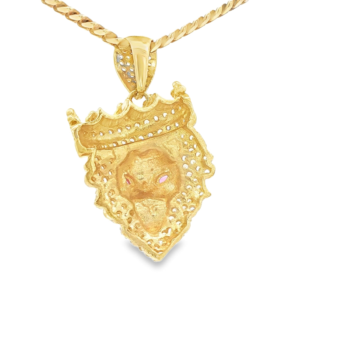 14 KARAT CHARM CZ LIONS HEAD CROWN RED EYES