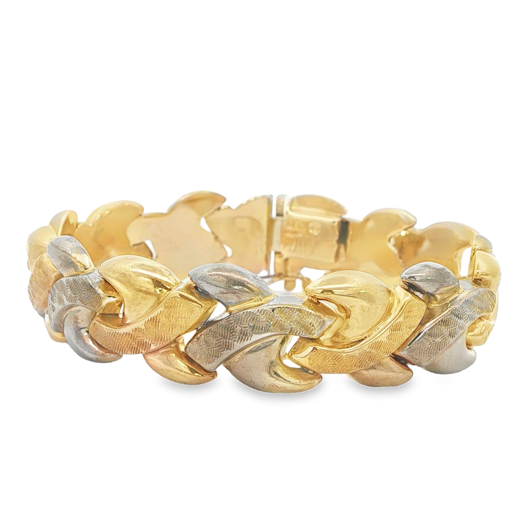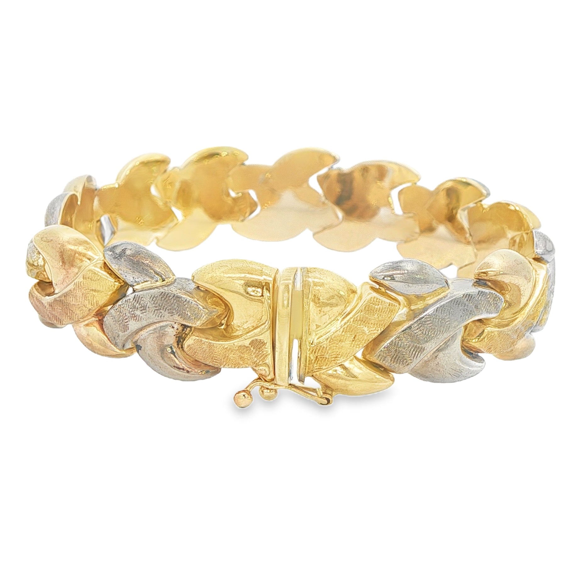 14 KARAT BRACELET LENGTH 6.5 WEIGHT: 17.7G : TEXTURED X STAMPATO TWO TONE