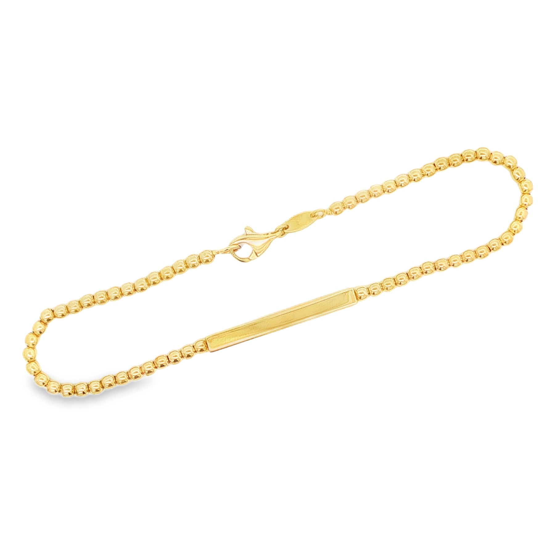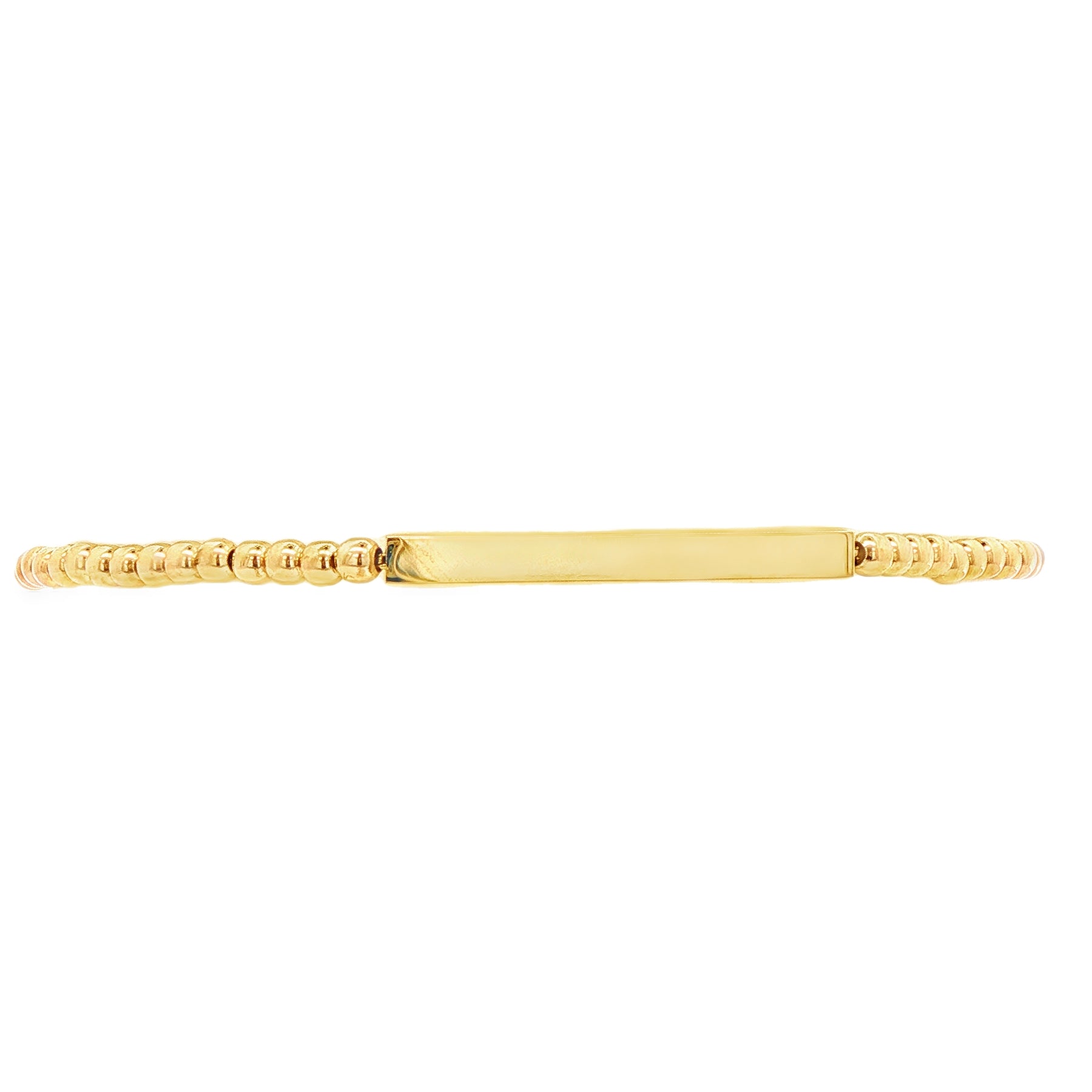 14 KARAT BRACELET LENGTH 7.5 WEIGHT: 4.2G : BEADS ENGRAVABLE CENTER BAR