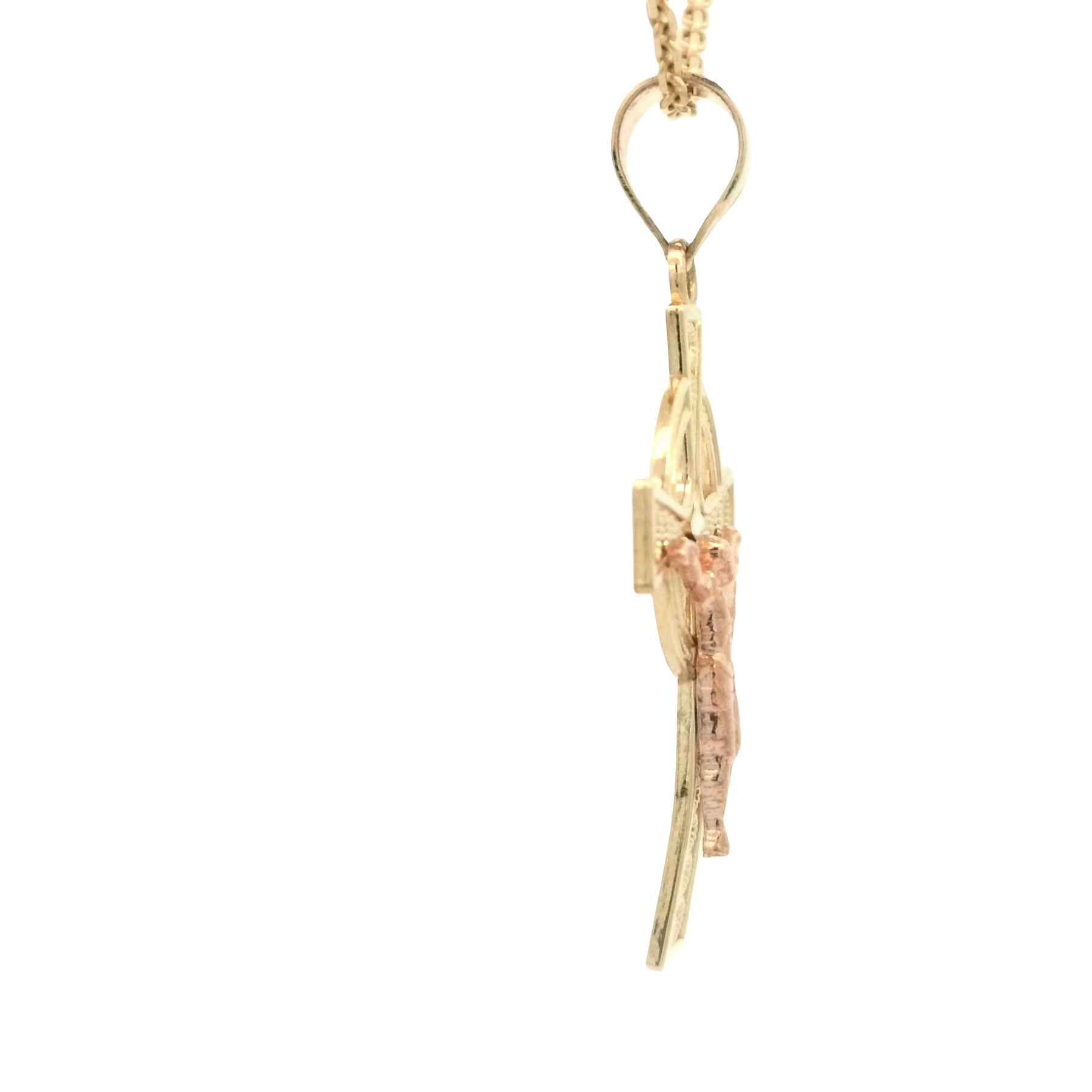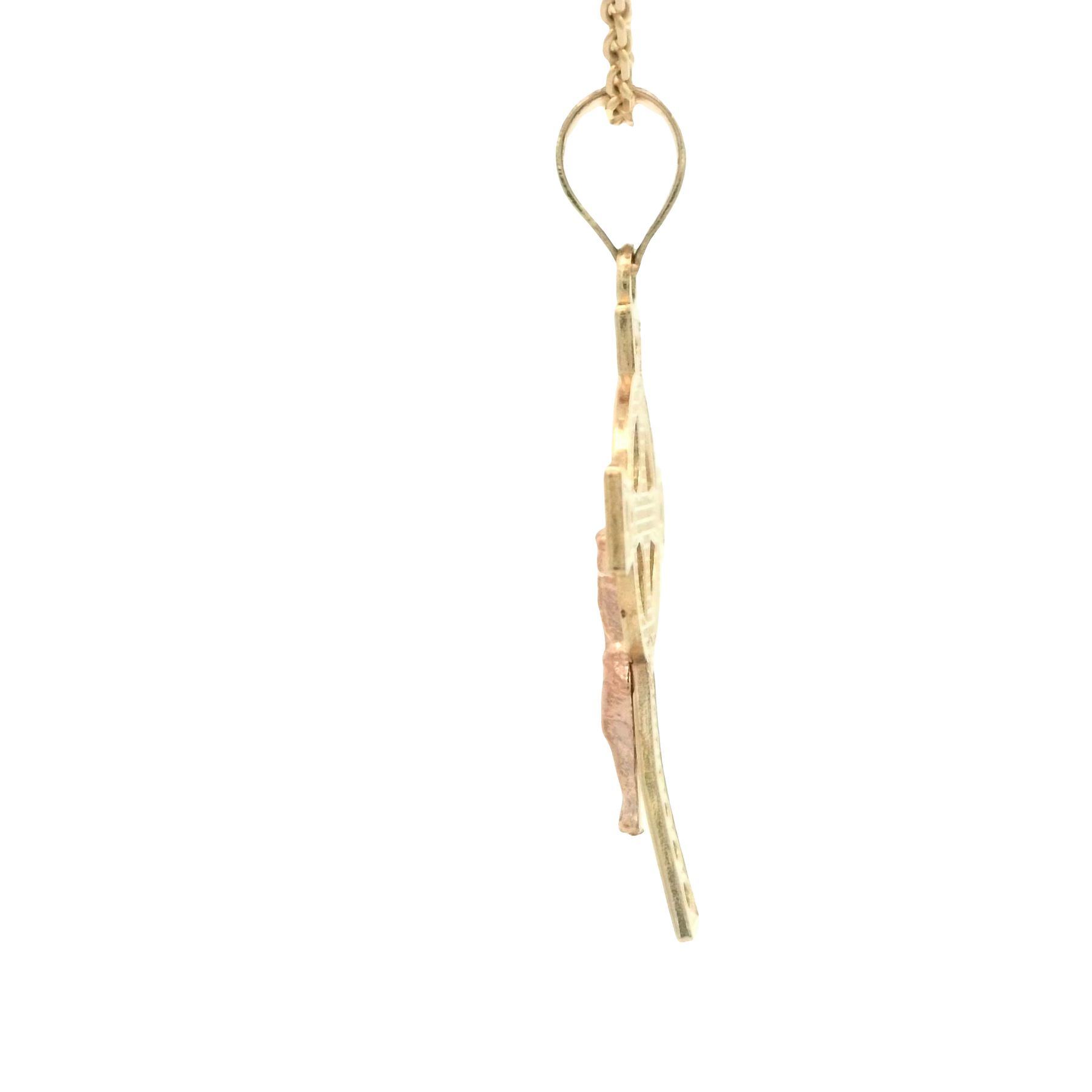 14 KARAT DIAMOND CUT CHARM JESUS CROSS CIRCLE BACK