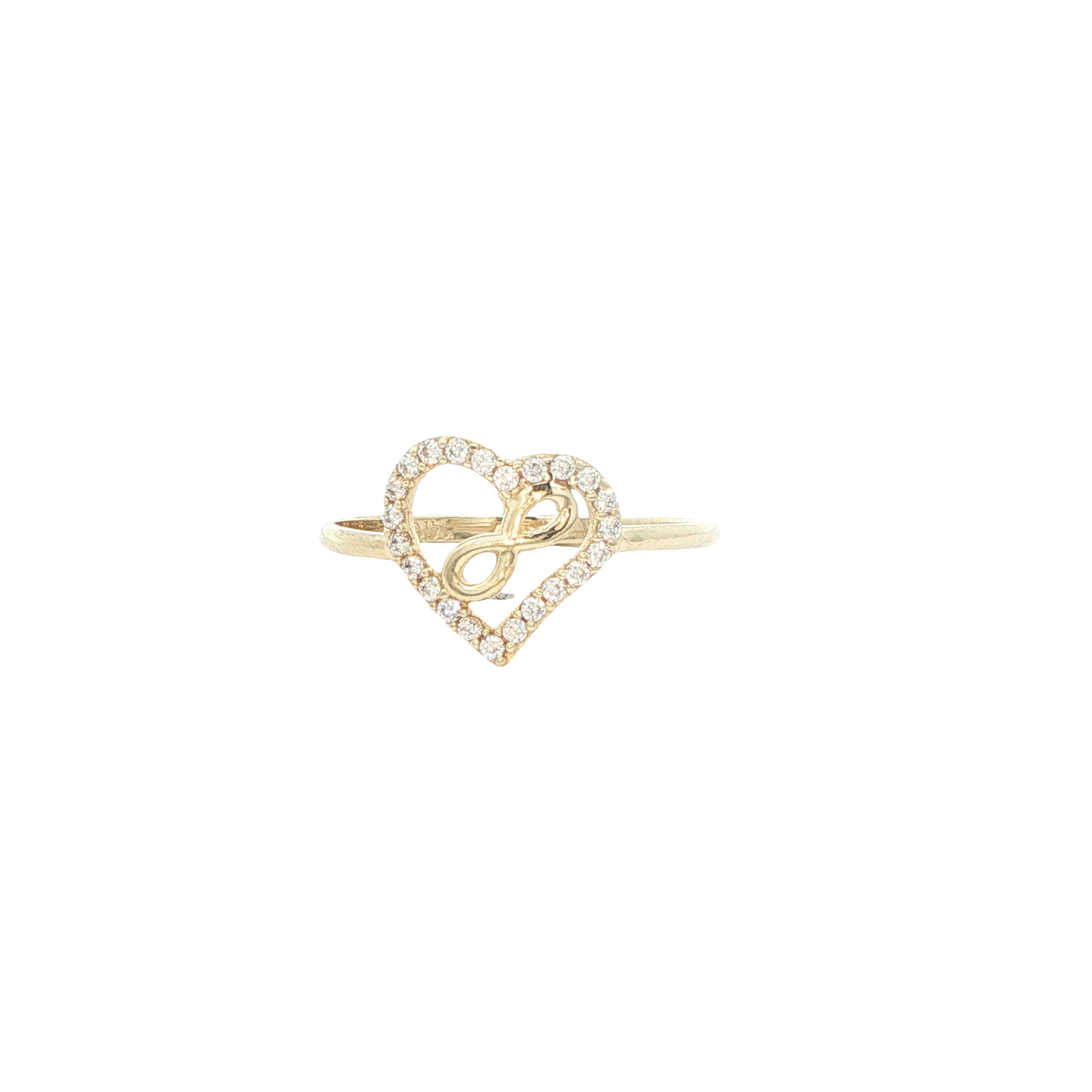 14 KARAT RING SIZE 6.75 WEIGHT: 1.1G : CZ HEART INFIITI CENTER