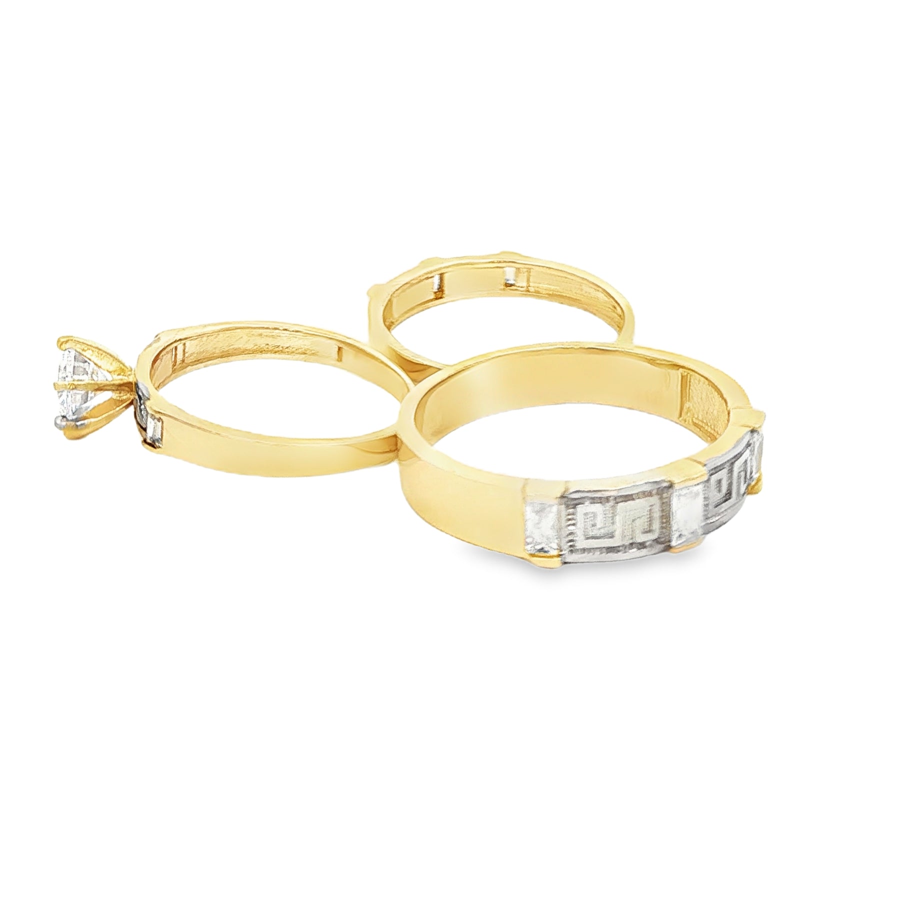 14 KARAT RING SIZE 7 WEIGHT: 1.5G : 3.1MM CZ GREEK PATTERN ACCENTS