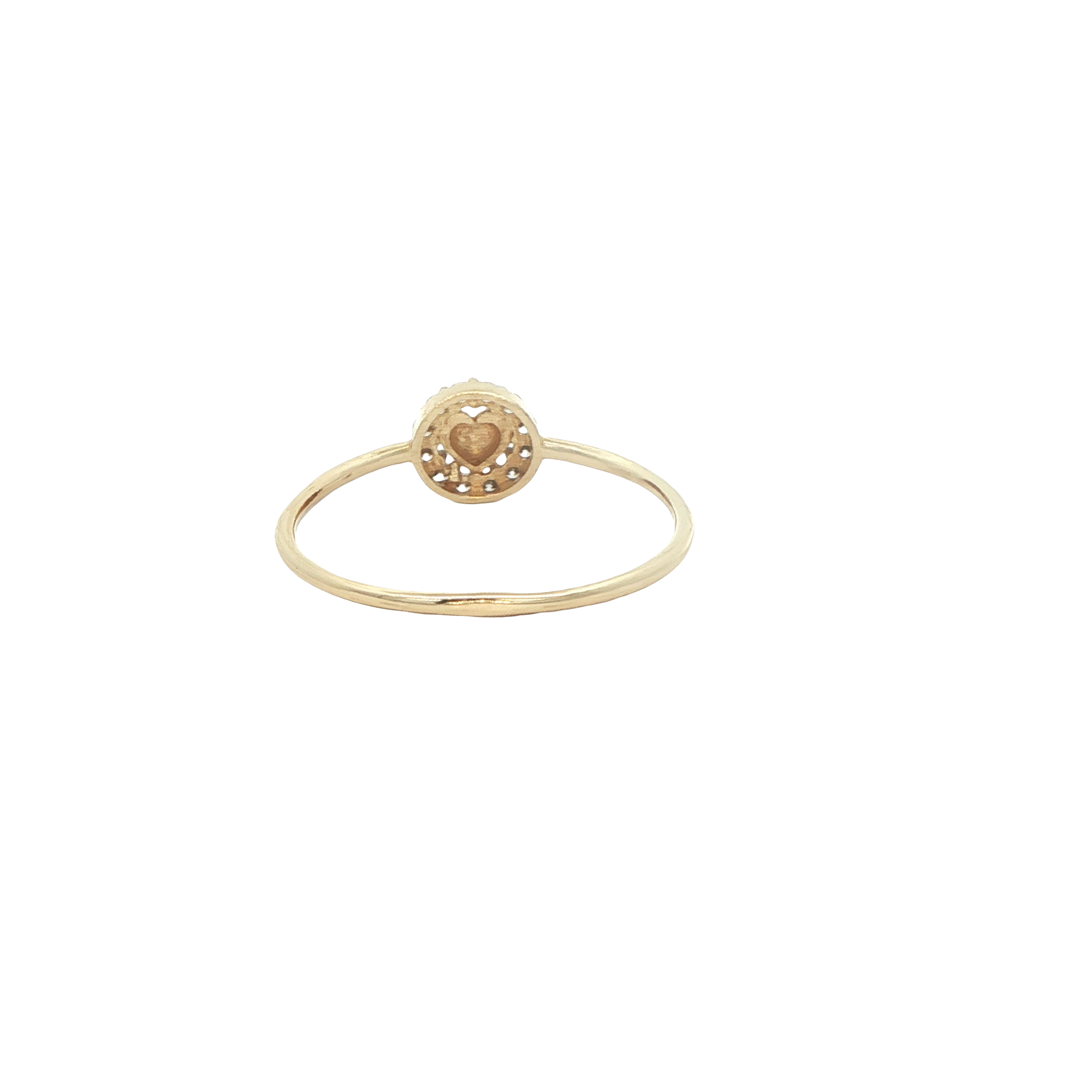 14 KARAT RING SIZE 8 WEIGHT: 1.1G : CZ CLEAR STONES HEART CENTER