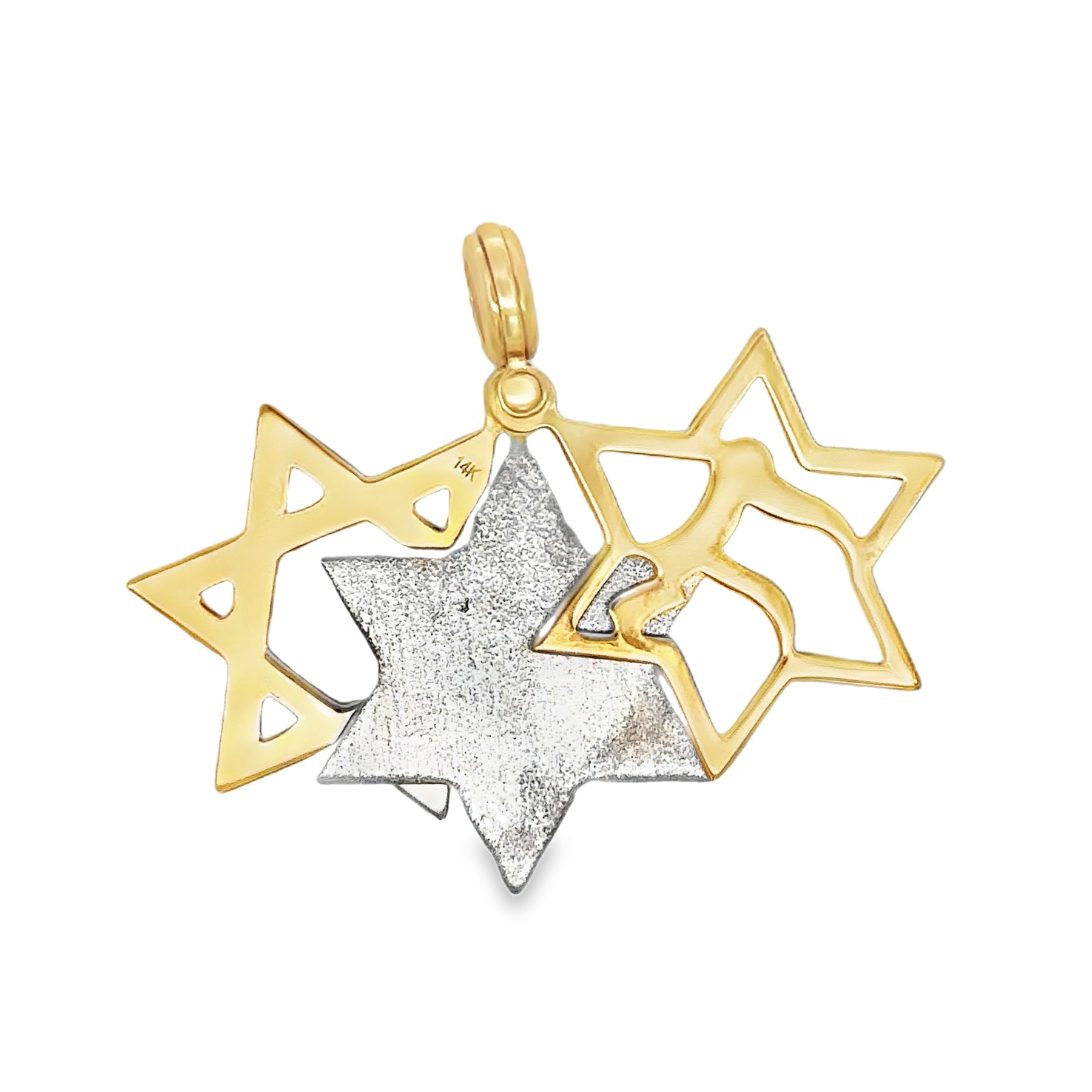 14K PENDANT 4.5G STAR DAVID 2TONE OM 3 SLIDERS