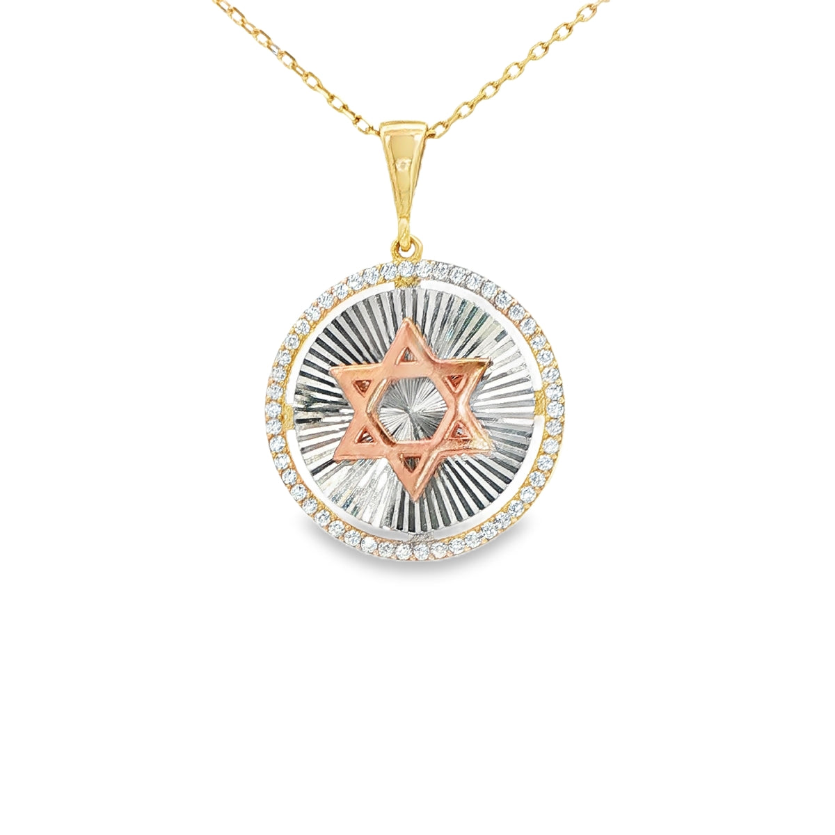 14K PENDENT 2.4G MEDALLION CZ STAR OF DAVID SUNBURST BACK