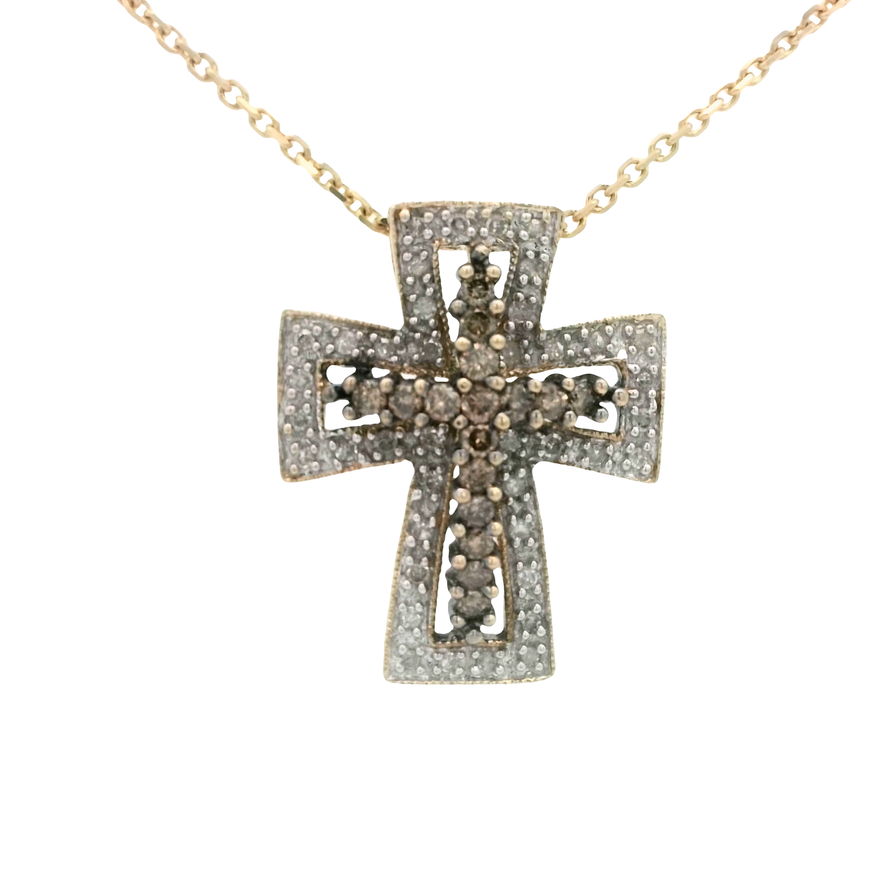 14K PENDANT CROSS CHAMPAGNE DIAMONDS