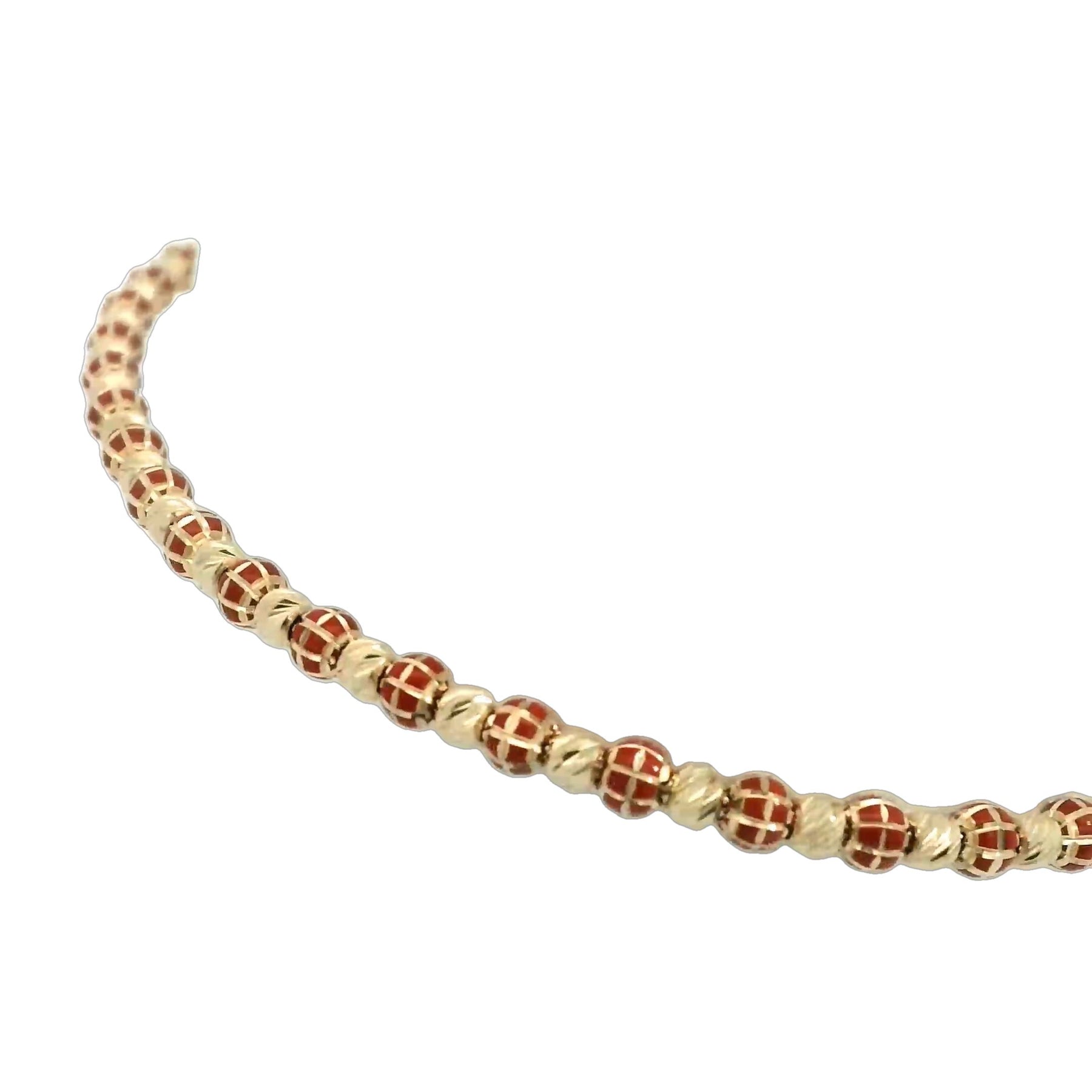 BRACELET 14KB 6.7G BEAD FLEX RED ENAMEL MOON SWIRL BEED